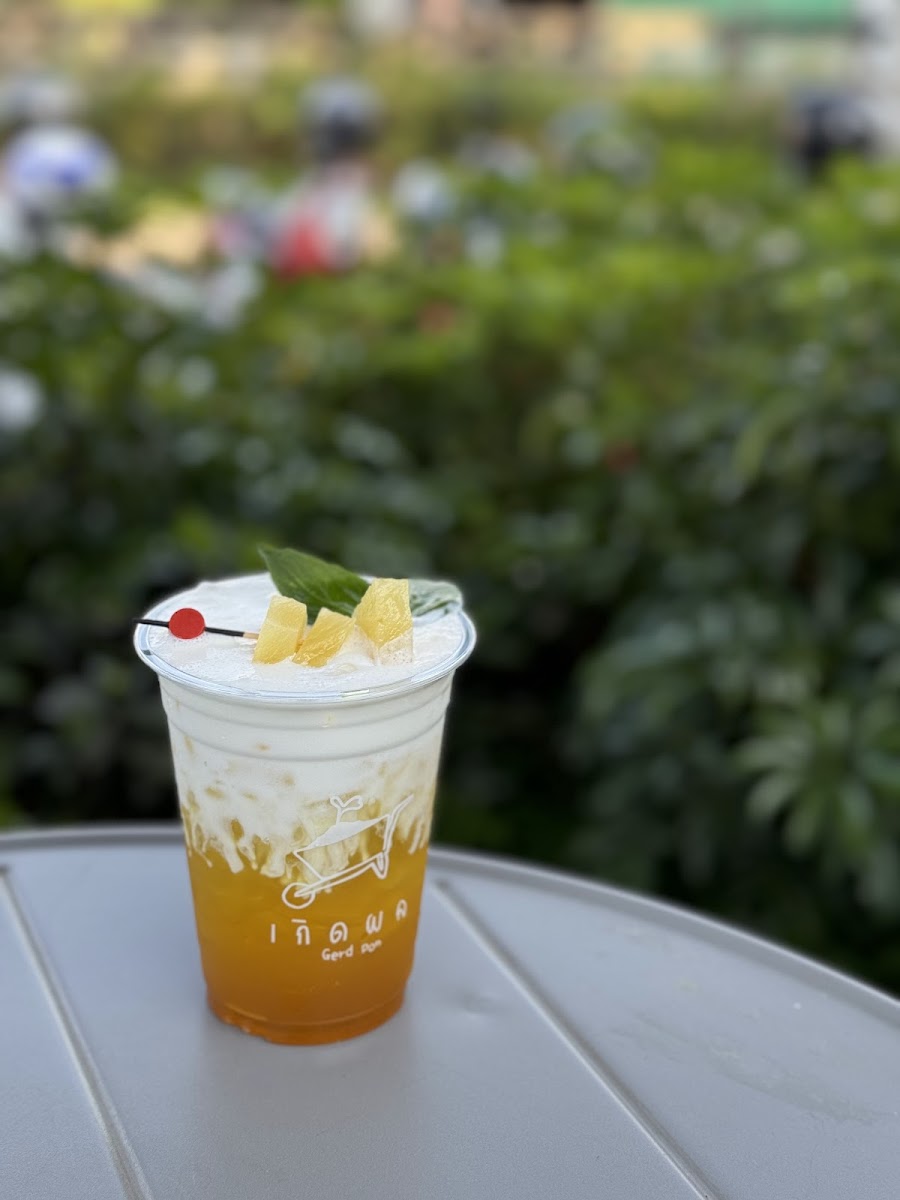 Gerd Pon has garnered rave reviews from customers who have been enchanted by its offerings. One enthusiastic visitor, TPBA Business, described it as "another great place" with delightful drinks and desserts, calling it a must-visit. The cafe is particularly known for its enticing pineapple drink, a refreshing choice as praised by Belle H, who highlighted the use of sweet local pineapples in the drink. The quality of both drinks and desserts is noteworthy, with many visitors, including Chaninat, marveling at the excellent value for such high quality—affordable prices paired with delicious flavors.